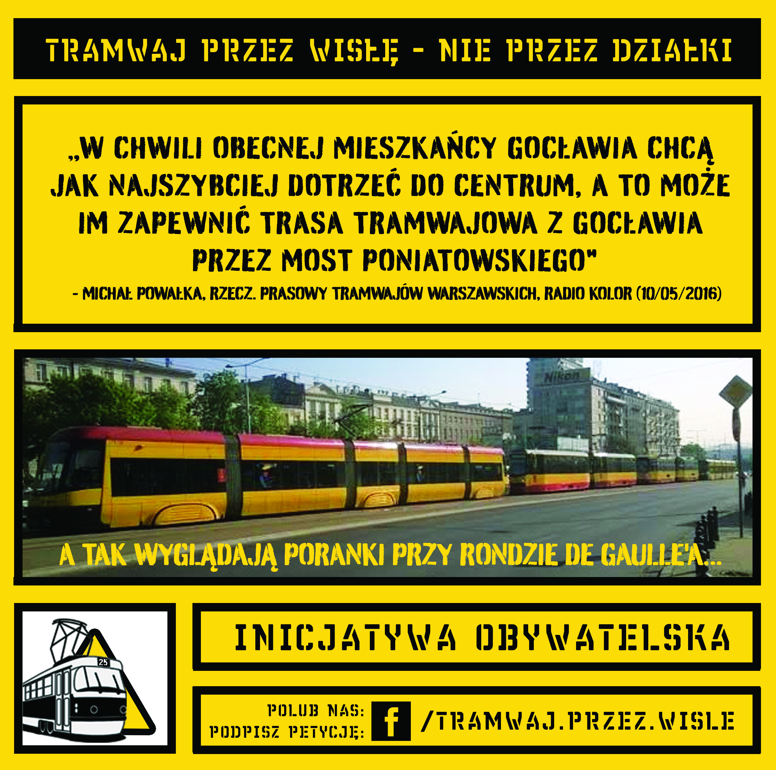 Jak twierdzą mieszkańcy zaangażowani w ten społeczny protest forsowana propozycja trasy tramwajowej nie rozwiązuje problemów komunikacyjnych dzielnicy. Dodanie kolejnych linii tramwajowych na bardzo mocno obciążony most Poniatowskiego nie przyczyni się efektywnie do poprawy sytuacji Gocławia, do której doprowadziła lekkomyślność w zakresie planowania i realizacji inwestycji mieszkaniowych w tej części dzielnicy. Spowoduje natomiast utrudnienia w komunikacji dla innych części Pragi-Południe. Inwestycja oznacza też bezpowrotną degradację terenów zielonych historycznego Kanału Wystawowego i Rodzinnych Ogródków Działkowych oraz zwiększy presję na dalszą ekspansję budownictwa mieszkaniowego. Widać to już po południowej stronie Trasy Łazienkowskiej, gdzie w ostatnich latach - kosztem kurczących się terenów zielonych, stanowiących dla miasta klin napowietrzający i miejsce rekreacji wielu mieszkańców całej dzielnicy – wybudowano nowe osiedla na terenach nieobjętych planem zagospodarowania.