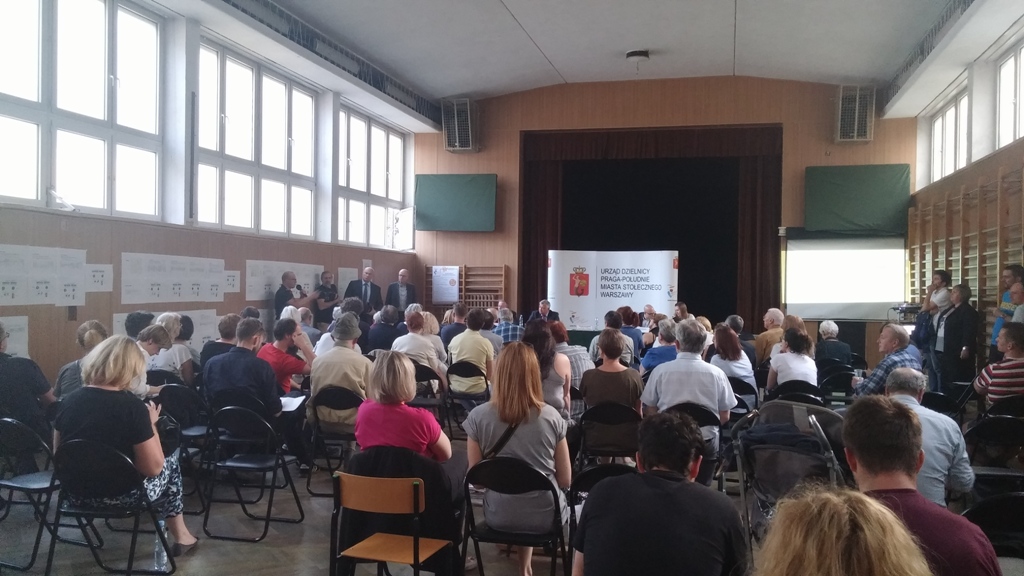 22 maja w Zespole Szkół przy ulicy Zwycięzców 7/9 odbyły się konsultacje społeczne w tej sprawie. Cała sala gimnastyczna zapełniła się mieszkańcami i przedstawicielami organizacji m.in. ŁADna Kępa, Stowarzyszenie Obywatelskie Saska Kępa oraz Samorządu Mieszkańców Saskiej Kępy. Każdy chciał zabrać głos w dyskusji, a zdania były mocno podzielone. Jak słusznie niektórzy zauważyli, w przeprowadzonej analizie znajdują się błędy. Mieszkańcy dopytywali o wycinkę drzew, zarzucając, że powstanie „eko-kratek” może do tego doprowadzić a także zaburzyć wegetacje roślin rosnących w pobliżu. Urzędnicy oraz koordynatorzy przeprowadzonej analizy uspokajali, że wszystkie planowane zmiany nie spowodują żadnej wycinki drzew. Przyznali się również, że analiza ta zawiera błędy. Na spotkaniu tym po raz kolejny poruszono temat parkometrów i stref płatnego parkowania dla osób spoza Saskiej Kępy. Propozycję tę urzędnicy stanowczo odrzucili, tłumacząc, że liczba miejsc na naszej dzielnicy mogłaby spaść nawet o 1/3 kosztem mieszkańców i to nie rozwiąże zaistniałego problemu. Mieszkańcy poruszyli również kwestie przyjezdnych z innych dzielnic, którzy zostawiają u nas swoje samochody i jadą komunikacją miejską do pracy na Powiśle czy do Śródmieścia. Większość osób zgodziła się na propozycję zastosowania identyfikatorów SK. Chyba to jedyna poruszana na tym spotkaniu kwestia, w której większość obecnych i urzędników była ze sobą zgodna. Padały jeszcze inne propozycje, jednak zagłuszane były przez kolejne. Pod koniec spotkania na sali panował ogromny gwar, każdy chciał coś powiedzieć, przez co zrobił się jeszcze większy chaos. Reasumując spotkanie to nie przyniosło pożądanych efektów. Zbyt duża różnica zdań sprawiła, że dyskusja stanęła w martwym punkcie.