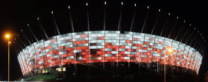 Dla tych, którzy nie zdążyli zobaczyć jak wyjątkowo wygląda podświetlona elewacja Stadionu Narodowego najbliższa okazja pojawi się już w weekend. Iluminację będzie można oglądać w godzinach od 21.00 do 24.00 w sobotę i w niedzielę z różnych miejsc w Warszawie.