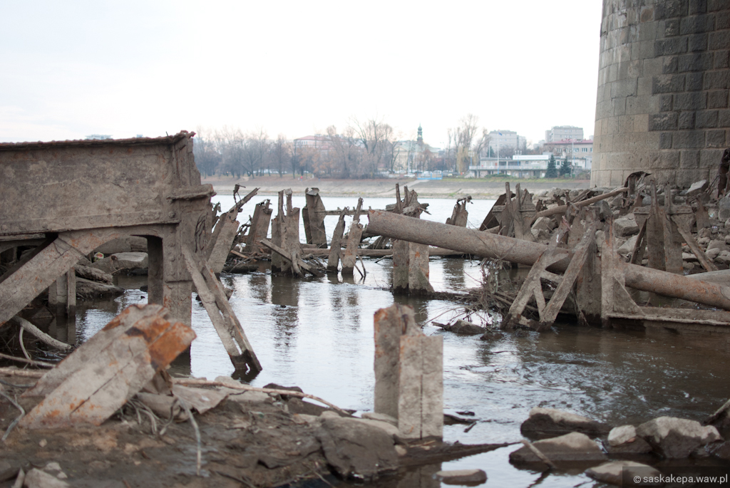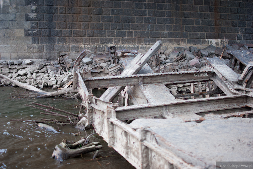 Razem z mostem ukazały się również szyny torowiska tramwajowego. Plaża od praskiej strony zdecydowanie się wydłużyła, a przez tak niski stan wody Wisłę można było przejść nawet pieszo!