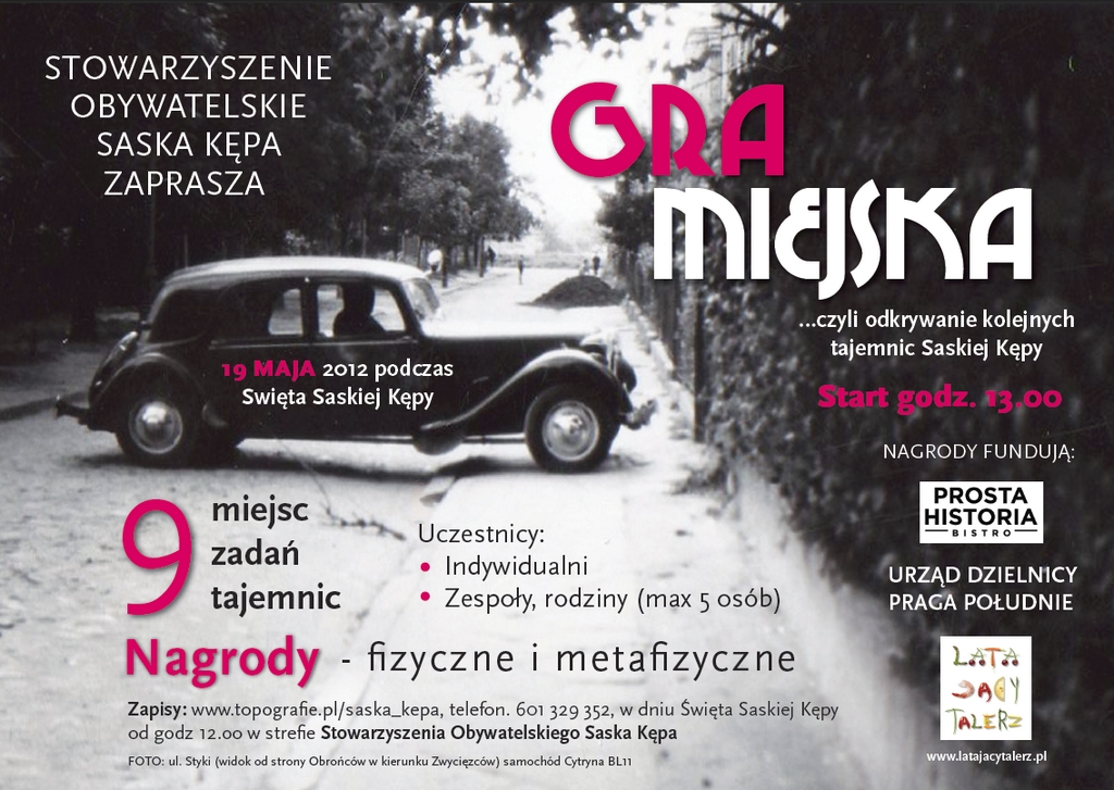 Stowarzyszenie Obywatelskie Saska Kępa podczas Święta Saskiej Kępy organizuje GRĘ MIEJSKĄ.