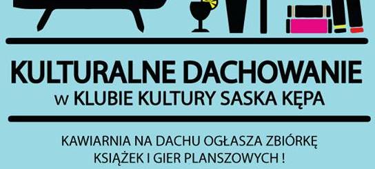 Klub Kultury Saska Kępa organizuje zbiórkę książek oraz gier planszowych, aby z zebranych pozycji utworzyć bogatą i ciekawą czytelnię. Będzie ona mieścić się w kawiarni na dachu budynku Klubu przy ul. Brukselskiej 23.