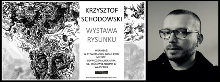 Krzysztof Schodowski ur. 1983 r., pochodzi z Olsztynka, obecnie mieszka w Warszawie. Jest melancholikiem i outsiderem. W sztuce zajmuje się głównie rysunkiem. Poszukuje introspekcji, wglądu w dramat przeżycia, w anatomię emocji człowieka.