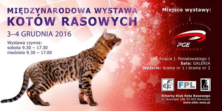 Miło nam będzie Państwa gościć na Międzynarodowej Wystawie Kotów Rasowych, która odbędzie się w dniach 03/04 grudnia 2016 r. na Stadionie Narodowym w Warszawie.