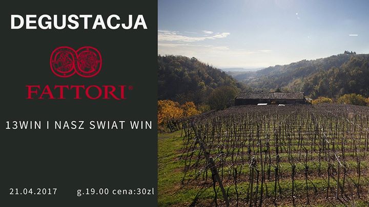 Nasz Świat Win oraz 13win mają przyjemność zaprosić Państwa na kolejną degustacje. Tym razem wybierzemy się w podróż do Veneto, aby poznać winnicę Fattori. Tradycyjnie zaprezentujemy 6win, opowiemy o regionie oraz o samej winiarni. Serdecznie zapraszamy.