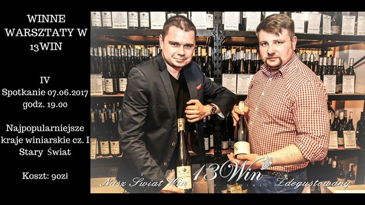 Mamy przyjemność zaprosić Państwa na IV spotkanie z cyklu "Winne warsztaty w 13Win". Prezentacje poprowadzi dobrze Wam znany ekspert winiarski, przedstawiciel Nasz Świat Win. Tematem jaki poruszymy będzie - Najpopularniejsze kraje winiarskie cz. I Stary Świat.
