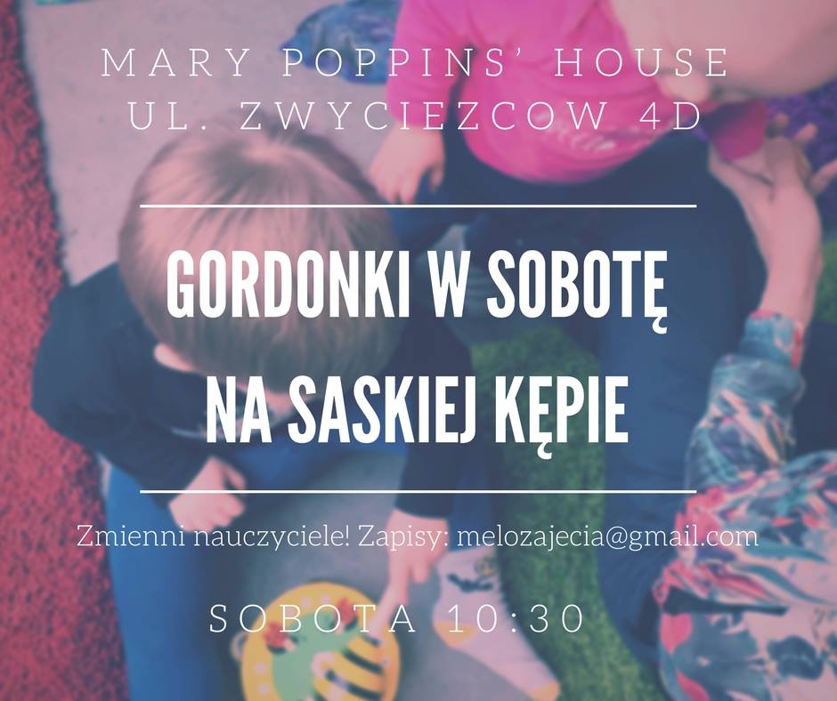 każda SOBOTA 10:00 i 11:00 Mary Poppins' House Saska Kępa ul. Zwycięzców 4D zapisy: melozajecia@gmail.com koszt: 40 zł (wejście pojedyncze), karnet 130 zł (4 wejścia, ważny 5 tygodni) Cykl spotkań w Mary Poppins' House to zajęcia gordonowskie umuzykalniające dla dzieci w wieku do 3 lat. Dziecko uczestniczy w zajęciach z opiekunem. Koszt udziału w zajęciach to 40 zł jednorazowo lub w karnecie (4 wejścia) 130 zł. Płatność gotówką na miejscu. Zajęcia trwają ok.40 minut. Na miejscu w Mary Poppins' House można napić się ciepłej kawy lub herbaty lub zimnej wody :) Na zajęciach dla najmłodszych prowadzonych w oparciu o teorię uczenia się muzyki Eliasa Edwina Gordona używamy przede wszystkim głosu, który jest najważniejszą zabawką. Śpiew osoby prowadzącej zajęcia, mamy, taty czy wreszcie samego dziecka. Śpiew który towarzyszy nam przez cały czas trwania zajęć. Dzięki temu dziecko oswaja się z muzyką tak samo płynnie i naturalnie jak z ludzką mową. Często używamy do lepszego rozumienia muzyki wstążek, piłeczek, woreczków, bąbelków... W trakcie zajęć dzieci uczą się tworzenia muzyki za pomocą improwizacji. Wymyślają swoje własne piosenki, ale śpiewają też znane z domu czy przedszkola ulubione melodie. Zostało udowodnione naukowo, że nauczanie muzyki od pierwszych chwil życia wspomaga ogólny rozwój psychiczny i fizyczny dziecka. Częste spotkania z muzyką wzmacniają u dzieci wrażliwość na dźwięk, umiejętność śpiewania i improwizacji, poczucie rytmu, potrzebę poruszania się, a w dalszej przyszłości ułatwiają naukę języków czy matematyki... Poza tym dziecko ma okazję do spotkania z innymi dziećmi, które razem z nim kreują nową i harmonijną rzeczywistość. Zajęcia wrześniowe i październikowe prowadzić będzie certyfikowana instruktorka gordonków Katarzyna Czapla prowadząca działalność pod nazwą Music City :) ZAPRASZAMY! Zapisy melozajecia@gmail.com lub messenger MeloMaluchów.