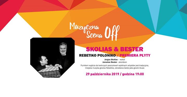 Wyjątkowy duet: Jorgos Skolias, legenda polskiej sceny, charyzmatyczny wokalista o niespotykanej barwie głosu i Jarosław Bester, wybitny akordeonista i interesujący kompozytor, założyciel kultowej formacji Bester Quartet w koncercie premierowym wydanej właśnie przez ForTune płyty „Rebetiko Poloniko”.