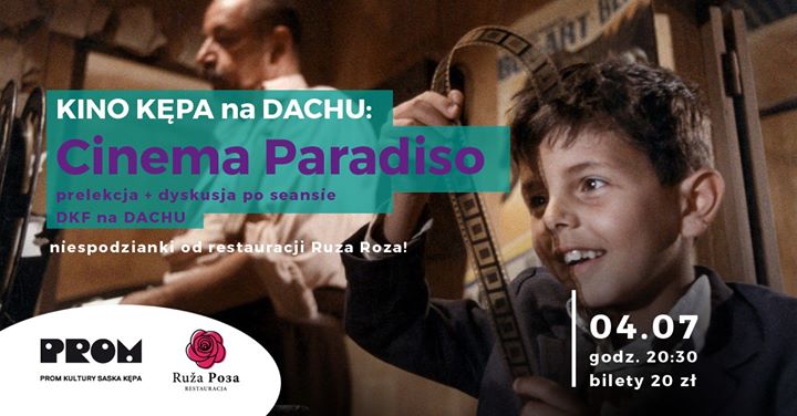 Pokażemy kultowy film "Cinema Paradiso”, a przed seansem o fenomenie tego filmu opowie kurator Kina Kępa, Tomek Lasek. Dodatkowo, jeśli ktoś z WAS będzie chętny, po seansie planujemy Dyskusyjny Klub Filmowy NA DACHU!